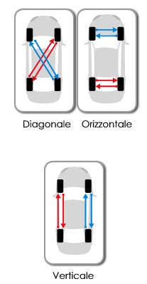 consiste nello scambio dello pneumatico anteriore sinistro con il posteriore destro e dell’anteriore destro con il posteriore sinistro.